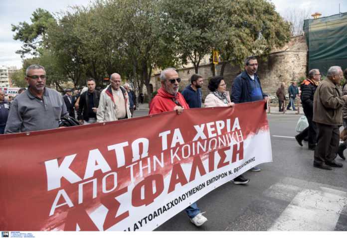Αρχικά συγκεντρώθηκαν στο άγαλμα Βενιζέλου και στη συνέχεια, κρατώντας πανό όπου αναγράφονταν «Κάτω χέρια από την Κοινωνική Ασφάλιση» πραγματοποίησαν πορεία σε κεντρικούς δρόμους της Θεσσαλονίκης που κατέληξε στην πλατεία Αριστοτέλους.