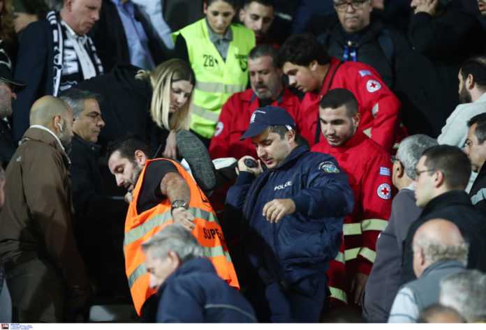 Στις κερκίδες των επισήμων, γνωστός πολιτικός παράγοντας αισθάνθηκε μια ξαφνική αδιαθεσία – πληροφορίες αναφέρουν ότι υπέστη ανακοπή – με αποτέλεσμα να σπεύσουν Εθελοντές Σαμαρείτες και η ασφάλεια του γηπέδου.