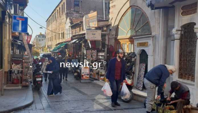 Φτάνοντας εκεί, η πρώτη εικόνα που αντικρίσαμε ήταν η αλλαγή της ταμπέλας ενός fast food, που ήταν γραμμένη στα αραβικά, με μία άλλη που είχε λατινικούς χαρακτήρες. Ο ιδιοκτήτης επέβλεπε τις εργασίες, εμφανώς δυσαρεστημένος. Άλλο ένα… θύμα της εντολής του δημάρχου της Κωνσταντινούπολης, Εκρέμ Ιμάμογλου, στους Σύρους καταστηματάρχες να αλλάξουν τις επιγραφές των καταστημάτων τους από τα αραβικά, στα τουρκικά.