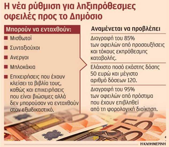 • Διαγραφή του 85% των οφειλών από προσαυξήσεις και τόκους εκπρόθεσμης καταβολής.