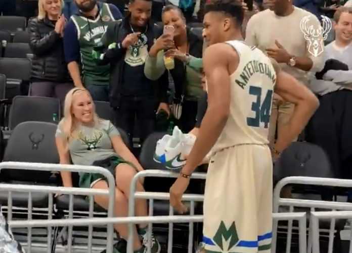 THIS is why we play!!@Giannis_An34 gifts his game worn shoes to a lucky fan after the WIN!!#FearTheDeer pic.twitter.com/Q4uJSQzzht