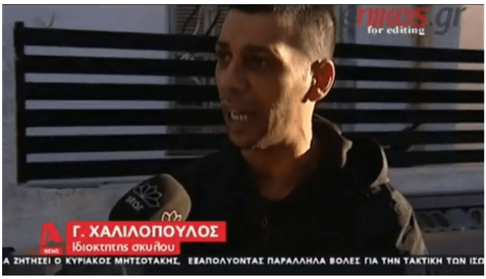 Μιλώντας στον Alpha o ιδιοκτήτης του σκύλου κατήγγειλε ότι δέχθηκε επίθεση από τους αστυνομικούς. «Με έβρισαν, με έβαλαν κάτω, με πατούσαν. Βγήκε το σκυλί έξω και βούτηξε τον αστυνομικό από το πόδι. Για να μην κάνω ζημιά, πήγα και έπεσα πάνω στο σκυλί. Προσπαθώ να ανοίξω το στόμα του, του πέταξα νερό, το ακινητοποίησα. Ο σκύλος δάγκωνε τον αστυνομικό γιατί τον χτυπούσε με το γκλοπ», είπε χαρακτηριστικά.