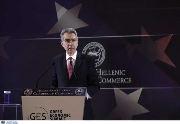Αλλά και για να υπογραμμίσουν οι ΗΠΑ τη δέσμευσή τους στο όραμα της Ελλάδας ως πυλώνα σταθερότητας στην περιοχή. Μια χώρα που είναι εποικοδομητικός “παίκτης” σε μια ευρεία περιοχή, που εκτείνεται από την Ανατολική Μεσόγειο μέχρι τα Βαλκάνια και τη Μαύρη Θάλασσα. Μια χώρα που μοιράζεται τις ίδιες αξίες μαζί μας και μια χώρα που μετά από μια πολύ δύσκολη δεκαετία κινείται και πάλι προς τα εμπρός σε οικονομικό επίπεδο, με έναν τρόπο που είναι καλό για την Ελλάδα αλλά και για τις ΗΠΑ», είπε ο Τζέφρι Πάιατ.