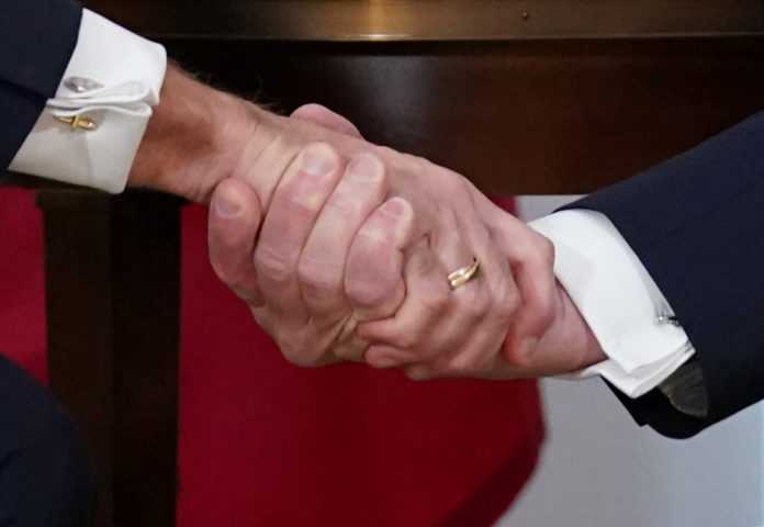 Ντόναλντ Τραμπ και Εμανουέλ Μακρόν… τα τσούγκρισαν μπροστά στους δημοσιογράφους και τις κάμερες, με το βίντεο να κάνει τον γύρο του κόσμου.