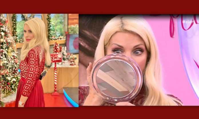 H όμορφη παρουσιάστρια δεν δίστασε να βαφτεί στον αέρα της εκπομπής της και να μας δείξει μικρά tips που θα μας κάνουν λαμπερές τις μέρες των γιορτών!