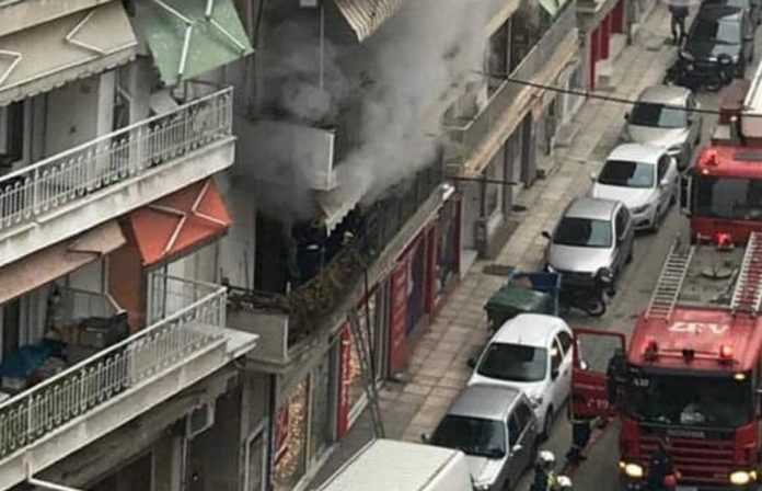 Η φωτιά τύλιξε το διαμέρισμα και ο ιδιοκτήτης βγήκε στο μπαλκόνι για να γλιτώσει. Στο σημείο σπεύδει ασθενοφόρο, περιπολικά και πυροσβεστικά οχήματα