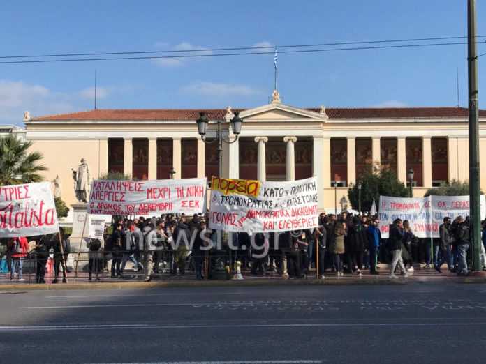 Η μαθητική συγκέντρωση ξεκίνησε στο κέντρο της Αθήνας. 11 χρόνια συμπληρώνονται σήμερα από το μοιραίο βράδυ που ο Αλέξανδρος Γρηγορόπουλος έπεσε νεκρός από τα πυρά του Επαμεινώνδα Κορκονέα.
