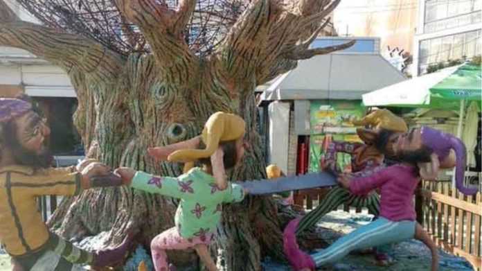 Αποτελεί οικτρή πρόφαση ότι η φάτνη του Δήμου μεταφέρθηκε στην Κουλούρα κατόπιν αιτήματος και έτσι ελλείψει πόρων τοποθετήθηκαν οι καλικάντζαροι που πριονίζουν το δέντρο της ζωής , μια τεράστια αντιαισθητική κατασκευή με μοχθηρές μορφές δαιμόνων με ουρές και μία κουφάλα με δαιμόνια μέσα που μοιάζει με το ιερό σπήλαιο της Γεννήσεως ,στον αντίποδα , ώστε αν πλησιάσει ειδικά μικρό παιδί ,αντί για τον Χριστό να δει τα αηδιαστικά δαιμόνια της Νέας Σατανολατρικής Εποχής που ποιος ξέρει ποιας Στοάς την ιδεοληψία , αποφάσισαν οι εκλεγμένοι άρχοντες να μας επιβάλλουν.
