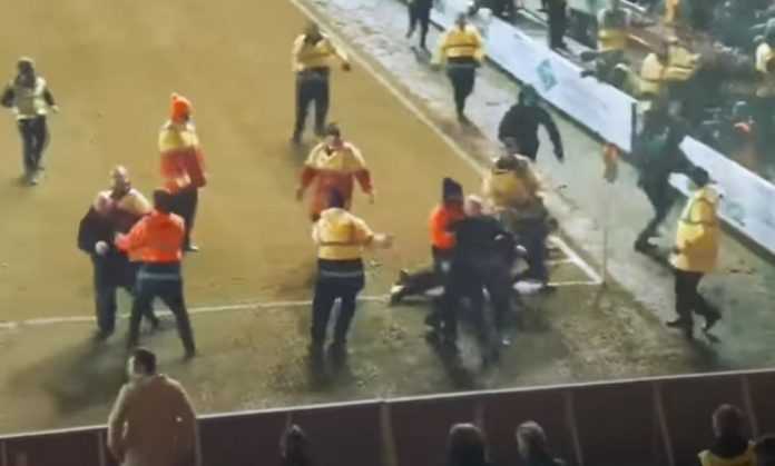 Εξαγριωμένοι οπαδοί της Φλίτγουντ μπήκαν στον αγωνιστικό χώρο και τον άρχισαν στις… καλές. Ακολούθησε ο κακός χαμός, αφού στο “παιχνίδι” μπήκαν κι άλλοι οπαδοί από τις δύο ομάδες. Τέτοιες συγκρούσεις είχαμε πάρα πολλά χρόνια να δούμε μέσα σε γήπεδο της Αγγλίας.