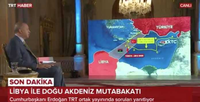 Όπως ακριβώς κάνουν παρουσιαστές ειδήσεων. Ο Ταγίπ Ερντογάν όλα τα μπορεί. Ο Ταγίπ Ερντογάν έγινε χθες και δημοσιογράφος. Και εξήγησε στον λαό του, γιατί μόνο αυτός μπορεί, πως ακριβώς έχουν τα πράγματα στην Ανατολική Μεσόγειο και πως η Τουρκία μαζί με την Λιβύη μπορούν να κάνουν ότι θέλουν γράφοντας στα παλιά τους τα παπούτσια το διεθνές δίκαιο.