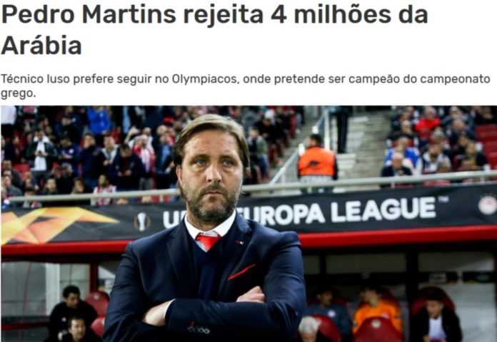 «Ο Πέδρο Μαρτίνς αρνήθηκε πρόταση ύψους 4.000.000 ευρώ από τη Σαουδική Αραβία. Ο Πορτογάλος προπονητής προτιμά να συνεχίσει στον Ολυμπιακό, όπου επιχειρεί να κατακτήσει το ελληνικό πρωτάθλημα», αναφέρεται χαρακτηριστικά σε δημοσίευμα της διάσημης Record.
