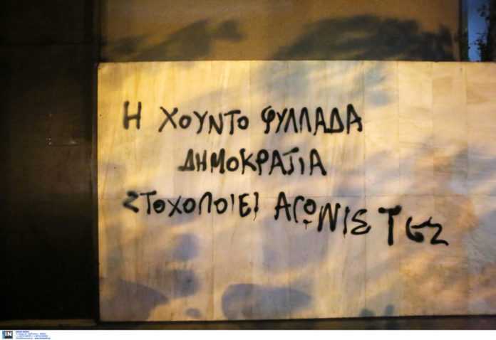 Υπενθυμίζεται, ότι λίγο μετά τις 17:00, περίπου 25 – 30 άγνωστοι πέταξαν τρικάκια και έγραψαν συνθήματα υβριστικά για δημοσιογράφους και την εφημερίδα “Δημοκρατία”.