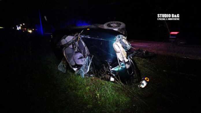 Όπως αναφέρουν οι ίδιες πηγές, το αυτοκίνητο πρώτα προσέκρουσε σε μεταλλική κολόνα και στηθαίο και κατόπιν ανετράπη σε παρακείμενο χωράφι.