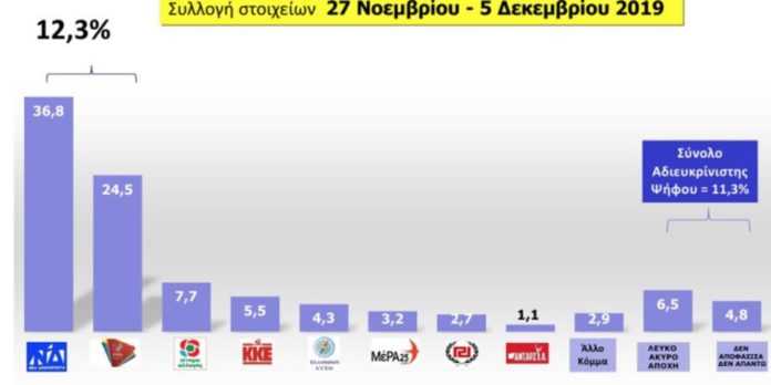 Δημοσκόπηση MRB: Μπροστά η ΝΔ με 12,3%