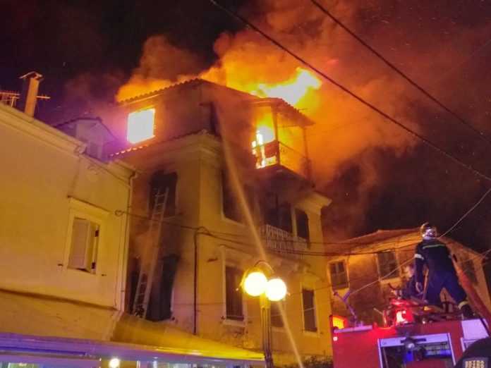 Υπό έλεγχο τέθηκε η φωτιά που ξέσπασε νωρίς χθες το βράδυ, σε τριώροφη μονοκατοικία στο Μαντούκι Κέρκυρας. Η πύρινη λαίλαπα κατάφερε μέσα σε λίγα λεπτά να τυλίξει στις φλόγες το παλιό αρχοντικό με συνέπεια να κινδυνέψουν οι ένοικοί της.