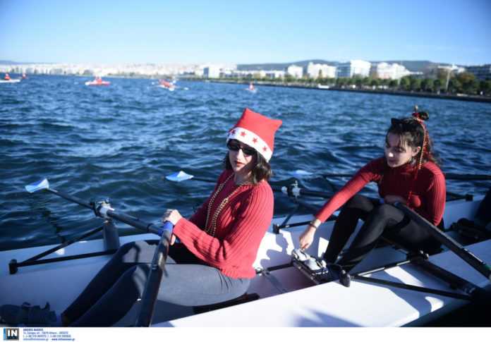 Άντρες και γυναίκες έγιναν για λίγο κωπηλάτες στον Θερμαϊκό Κόλπο. Πανέμορφες εικόνες στο πνεύμα των ημερών…