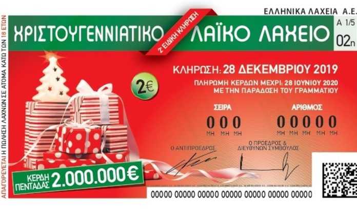 Τα Χριστούγεννα της ζωής του θα κάνει ο μεγάλος τυχερός του Χριστουγεννιάτικου Λαϊκού Λαχείου, καθώς για ακόμη μία χρονιά η ειδική έκδοση του διασημότερου λαχείου κλήρωσης προσφέρει εγγυημένο έπαθλο 2.000.000 ευρώ.