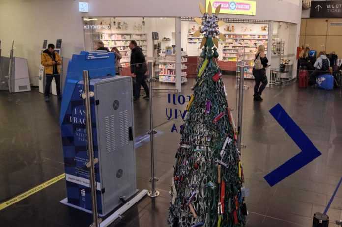 Οι υπεύθυνοι αεροδρομίου στη Λιθουανία προσέγγισαν με έναν εντελώς ασυνήθιστο τρόπο τη διακόσμηση για τα Χριστούγεννα, στόλισαν ένα χριστουγεννιάτικο δέντρο με κατασχεθέντα αντικείμενα.