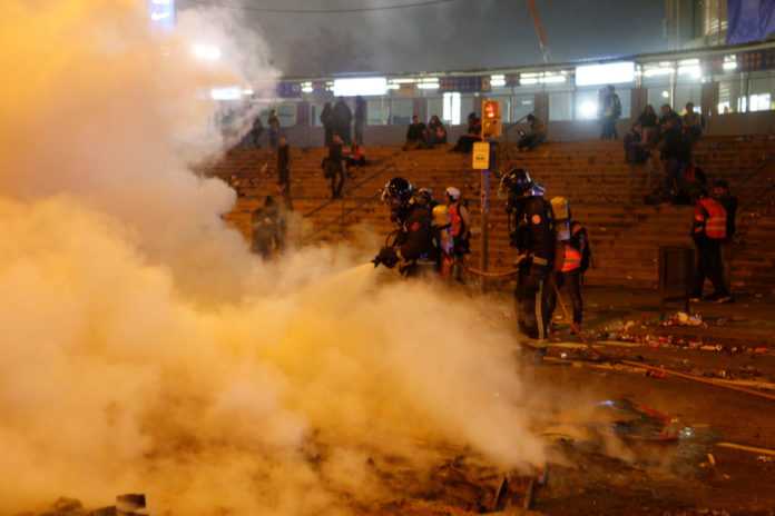 Σε βίντεο που κατέκλυσαν το διαδίκτυο, η αστυνομία προσπάθησε να διαλύσει το συγκεντρωμένο πλήθος και, μάλιστα, λόγω των πολλών εστιών πυρκαγιάς, στο σημείο κλήθηκαν ακόμα και δυνάμεις της τοπικής Πυροσβεστικής Υπηρεσίας.