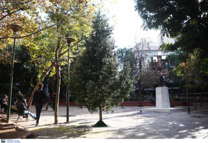 Στήθηκε και πάλι χριστουγεννιάτικο δέντρο στην πλατεία στα Εξάρχεια, δύο ημέρες μετά το κάψιμο του πρώτου που είχε βάλει ο Κώστας Μπακογιάννης.