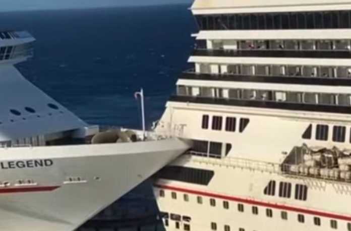 Το απίστευτο αυτό ατύχημα ανάμεσα στα δυο κρουαζιερόπλοια καταγράφηκε από επιβάτες ενός τρίτου πλοίου και μέσα σε λίγη ώρα αναρτήθηκε στα μέσα κοινωνικής δικτύωσης.