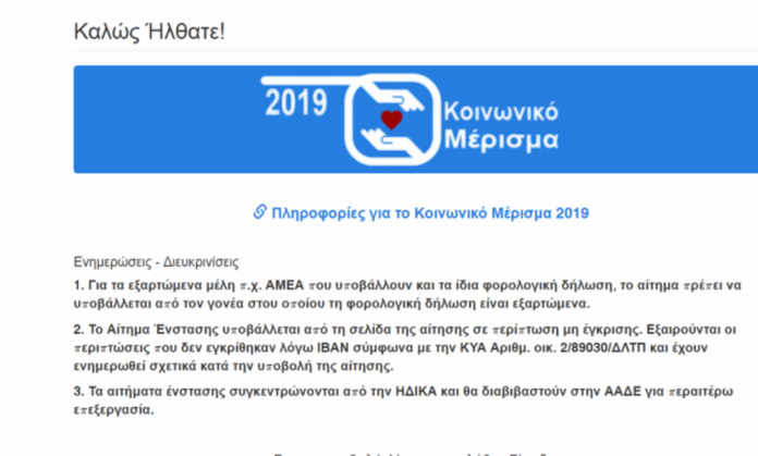 Κοινωνικό μέρισμα 2019- ΗΔΙΚΑ: Σε λειτουργία είναι η εφαρμογή υποβολής ένστασης για τις αιτήσεις που απορρίπτονται