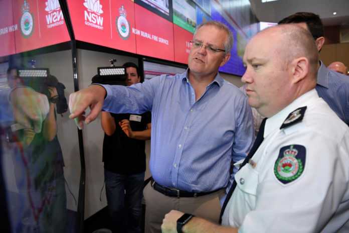 Ο Μόρισον συνάντησε στην πολιτεία Νέα Νότια Ουαλία τους πυροσβέστες, οι οποίοι επί μήνες μάχονται ενάντια σε φονικές φωτιές, πολλές εκ των οποίων παραμένουν εκτός ελέγχου.