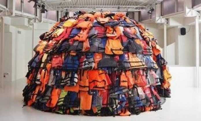 Η εγκατάσταση «SOS-Save Our Souls» είναι ένας θόλος ύψους άνω των 5 μέτρων, από σωσίβια γιλέκα, έργο του καλλιτέχνη-ακτιβιστή Αχιλλέα Σούρα. Παρουσιαζόταν στο πλαίσιο μιας έκθεσης με τίτλο «Διάπλοι».