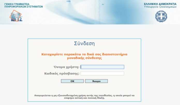 Επιλέγουν: Είσοδος στην εφαρμογή, όπου θα τους ζητηθούν το όνομα χρήστη και ο κωδικός τους στο TAXISnet.