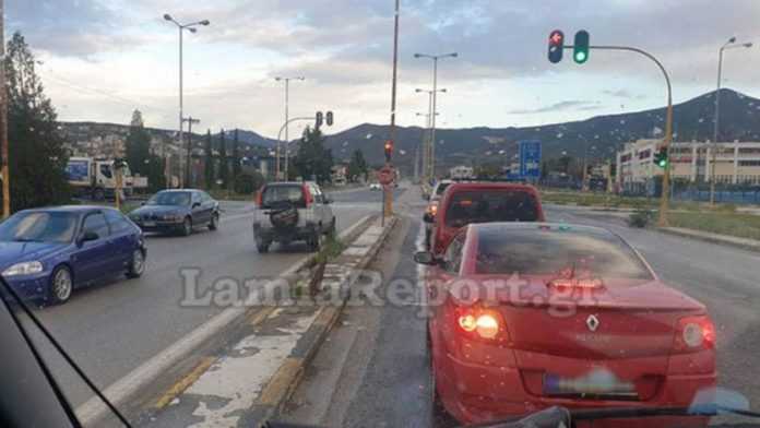 Απίστευτο συμβάν στη Λαμία, στην νότια είσοδο στα φανάρια της ΔΕΗ, με έναν οδηγό να κινείται ανάποδα…