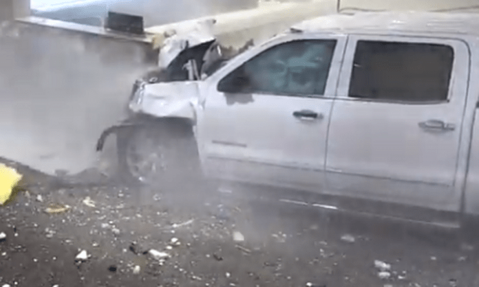 Σύμφωνα με όσα μεταδίδουν τα διεθνή ΜΜΕ το φορτηγάκι του 40χρονου Χουάν Μονσίβις έπεσε με ταχύτητα… 160 χλμ/ώρα στην τζαμαρία του κτιρίου και «σφηνώθηκε» στο χώρο διακίνησης αποσκευών.