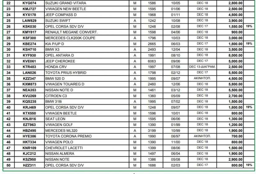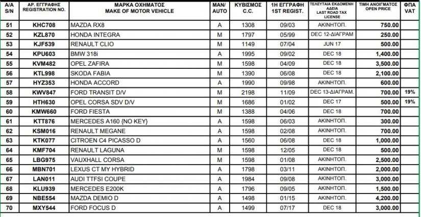 Σημειώνεται ότι η κατακύρωση στον τελευταίο πλειοδότη γίνεται εφόσον η τιμή κριθεί συμφέρουσα και αφού ο ίδιος παρουσιάσει την πολιτική του ταυτότητα, ενώ ο αγοραστής επιβαρύνεται με καθυστερημένες άδειες κυκλοφορίας και τα όποια έξοδα εγγραφής των οχημάτων.
