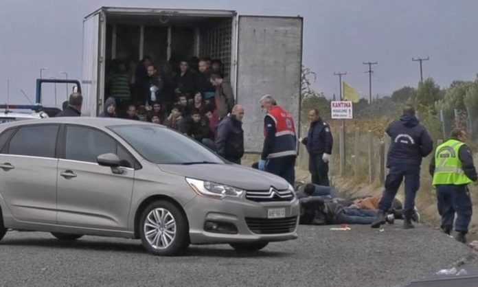 Κατά την διάρκεια του τυπικού ελέγχου του φορτηγού, ο οδηγός προσκόμισε στην Τροχαία όλα τα απαραίτητα χαρτιά και τιμολόγια του εμπορεύματος που υποτίθεται ότι μετέφερε. Όταν όμως έθεσε ξανά σε κίνηση το φορτηγό, οι αστυνομικοί άκουσαν έναν έντονο θόρυβο και εκτιμώντας ότι μπορεί να πρόκειται ενδεχομένως για μηχανική βλάβη, επενέβησαν εκ νέου ζητώντας από τον οδηγό να ακινητοποιήσει το φορτηγό. Οι άνδρες της Τροχαίας στη συνέχεια διαπίστωσαν ότι ο θόρυβος προερχόταν από το ρυμουλκό του φορτηγού και ότι τον προκαλούσαν σκόπιμα οι πρόσφυγες που χτυπούσαν και κλωτσούσαν την πόρτα του ψυγείου για να απελευθερωθούν.