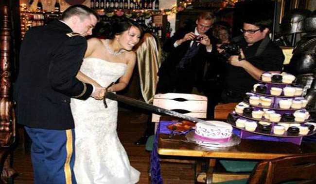 Θέλετε να εντυπωσιάσετε στο γάμο σας και πιστεύετε πως ένα ωραίο νυφικό και μια όμορφη δεξίωση δεν είναι αρκετά για να το καταφέρετε; Στη δεξίωση του γάμου σας λοιπόν κόψτε τη γαμήλια τούρτα με ένα σπαθί και θα γίνει… πόλεμος απ΄τα γέλια των καλεσμένων. Όλα τα βλέμματα σίγουρα θα στραφούν πάνω σας και οι φωτογραφίες του γάμου σας θα είναι αντικείμενο γέλιου για πολύ καιρό και θα βρίσκονται για πάντα στα σπίτια όλων!