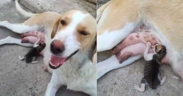 Ένα συγκινητικό βίντεο που παρουσιάζει ένα μικρό γατάκι να θηλάζει μια σκυλίτσα, ανέβασε στον προσωπικό της λογαριασμό χρήστρια του Facebook.