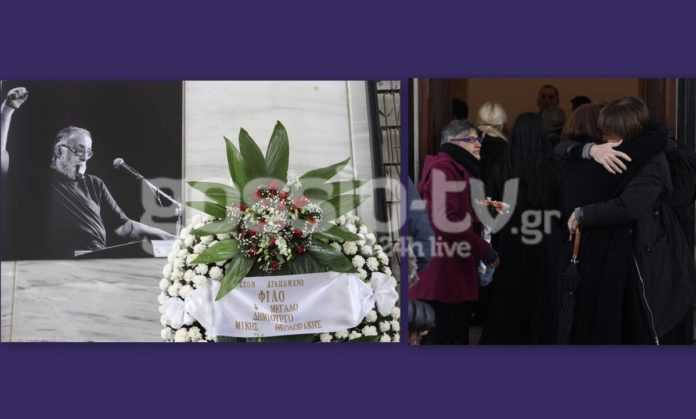 Η σύζυγός του, Μαρία Παπαγιάννη, και τα παιδιά του, Αλεξάνδρα και Στέργιος Μικρούτσικος, αλλά και φίλοι και συγγενείς του Θάνου Μικρούτσικου βρίσκονται στο Α’ Νεκροταφείο για το τελευταίο αντίο στον μεγάλο συνθέτη