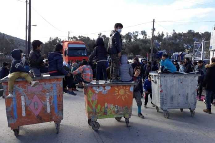 Διαμαρτυρία πραγματοποιούν το μεσημέρι της Τρίτης πρόσφυγες και μετανάστες στη Μόρια στη Μυτιλήνη ζητώντας ρεύμα και θέρμανση.