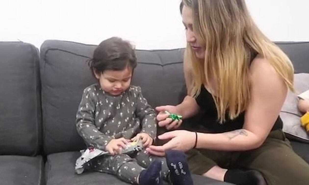 Όχι όμως το κοριτσάκι που θα δείτε. Κάθετε στον καναπέ μαζί με τη μαμά του, η οποία του δίνει μια μπανάνα σε συσκευασία δώρου.