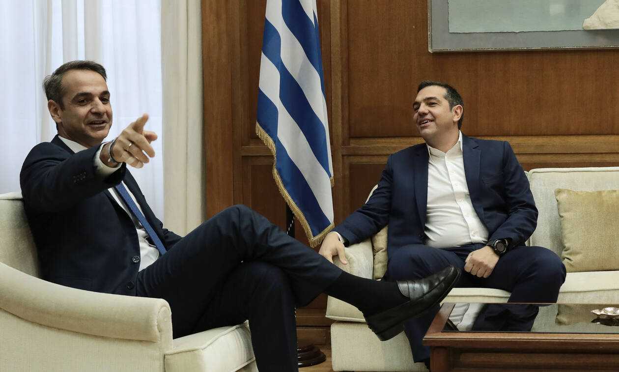 Στο γραφείο του πρωθυπουργού Κυριάκου Μητσοτάκη βρίσκεται ο αρχηγός της αξιωματικής αντιπολίτευσης Αλέξης Τσίπρας στο πλαίσιο των προγραμματισμένων ενημερώσεων των πολιτικών αρχηγών.