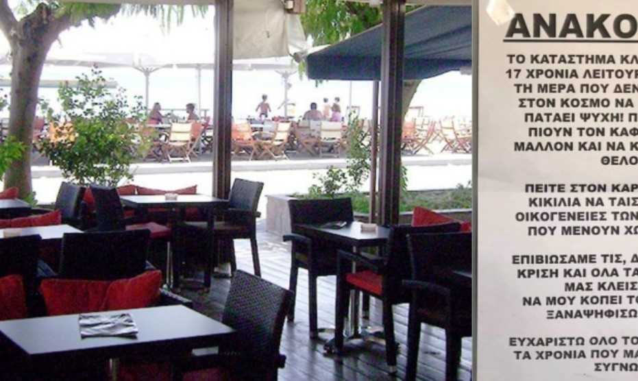 Με μία αν μη τι άλλο σκληρή και καυστική ανακοίνωση επέλεξε να διαμαρτυρηθεί ιδιοκτήτης καφετέριας στο Ηράκλειο Κρήτης