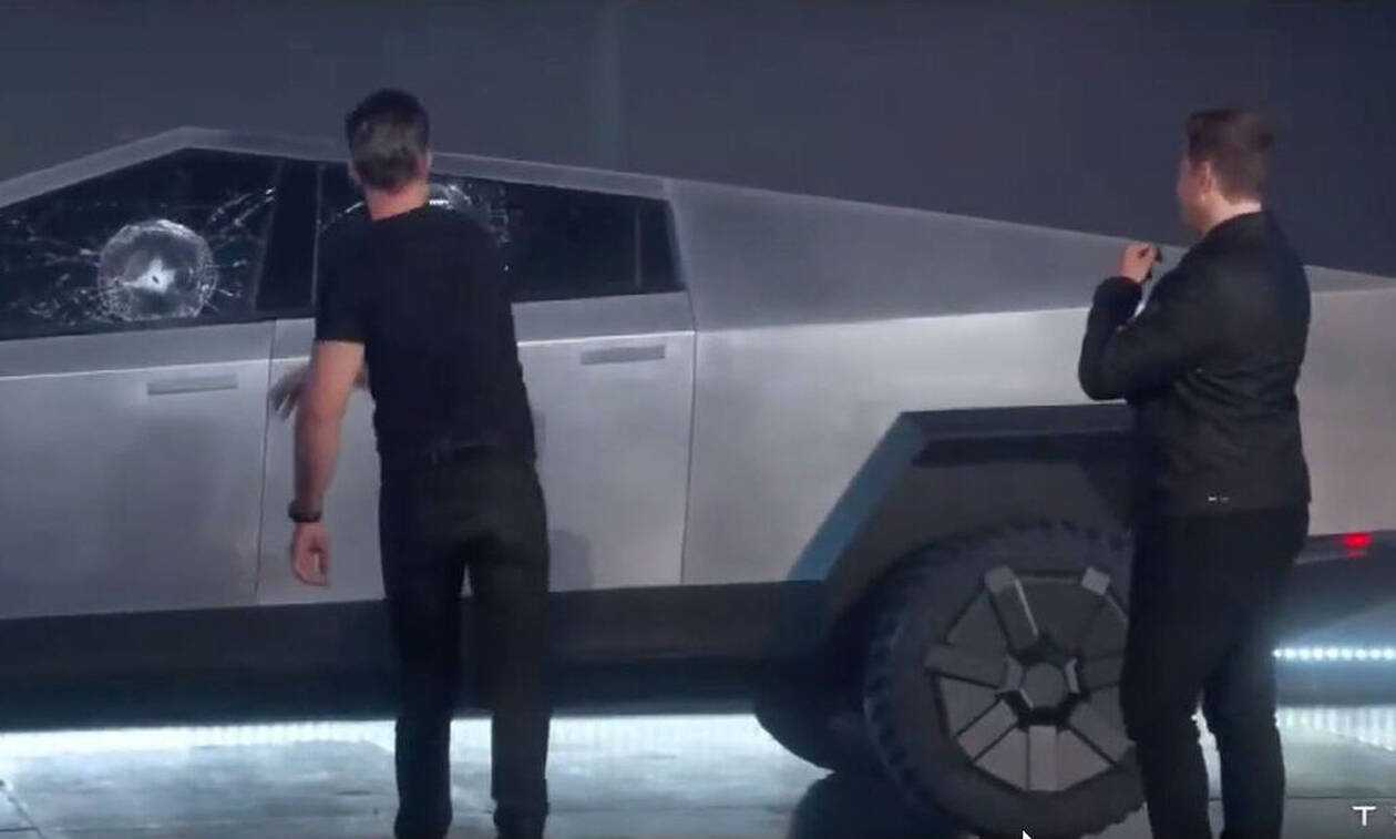 Στην παρουσίαση του καινούργιου αγροτικού της Tesla την παράσταση την έκλεψε καταρχήν το ίδιο το Cybertruck με τη… cyber εμφάνισή του και στη συνέχεια τα θωρακισμένα κρύσταλλα που θρυμματίστηκαν όταν ο αρχισχεδιαστής της μάρκας, ο Franz von Holzhausen τους έριξε μια μεταλλική μπάλα μεγέθους ανάλογου με αυτό μιας μπάλας του τένις.
