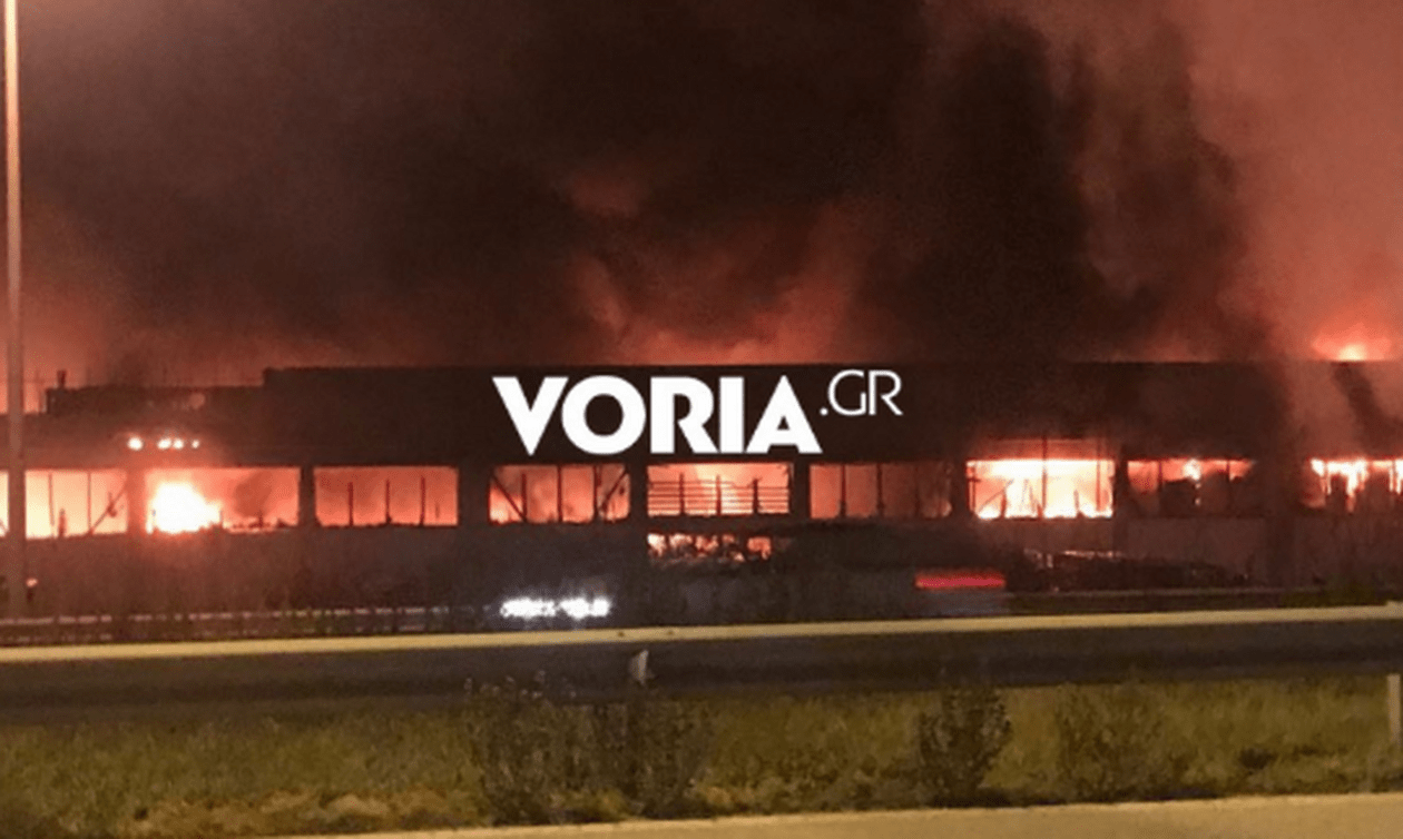 Μεγάλη φωτιά εκδηλώθηκε στην επιχείρηση εμπορίας γεωργικών μηχανημάτων John Deere, στη Θεσσαλονίκη.