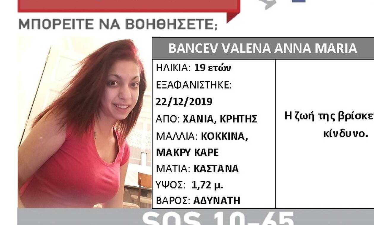 Συγκεκριμένα πρόκειται για την 19χρονη Άννα Μαρία Βαλένα Μπλάνσεβ, που εξαφανίστηκε στις 22 Δεκεμβρίου, από τα Χανιά της Κρήτης.