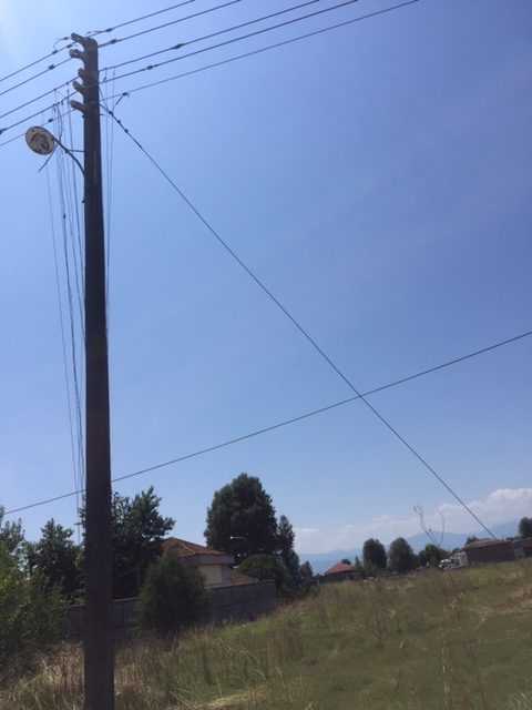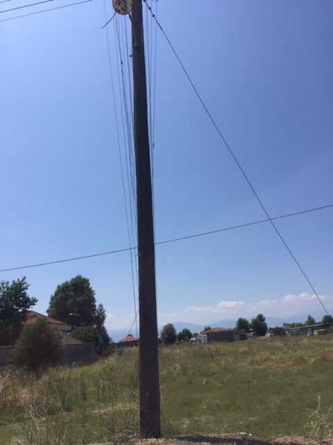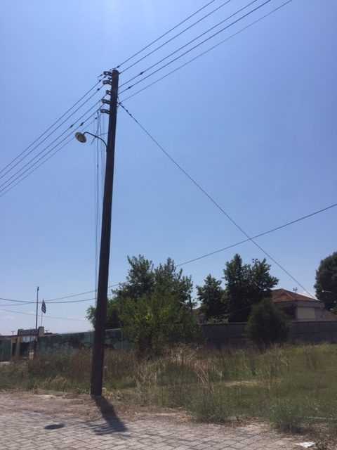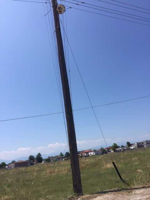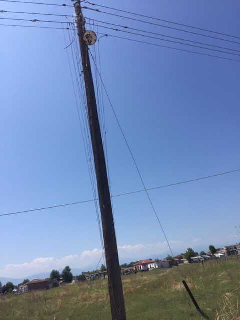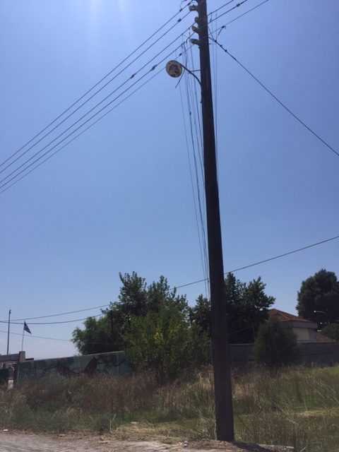 Υπάρχουν πολλές τέτοιες κολώνες γεμάτες καλώδια σε όλον τον οικισμό. Τα καλώδια μετά την κολόνα είναι πάνω στο έδαφος και υπάρχει κίνδυνος ηλεκτροπληξίας. Δυστυχώς, αυτή είναι η ΔΕΗ, αυτή είναι η Ελλάδα…