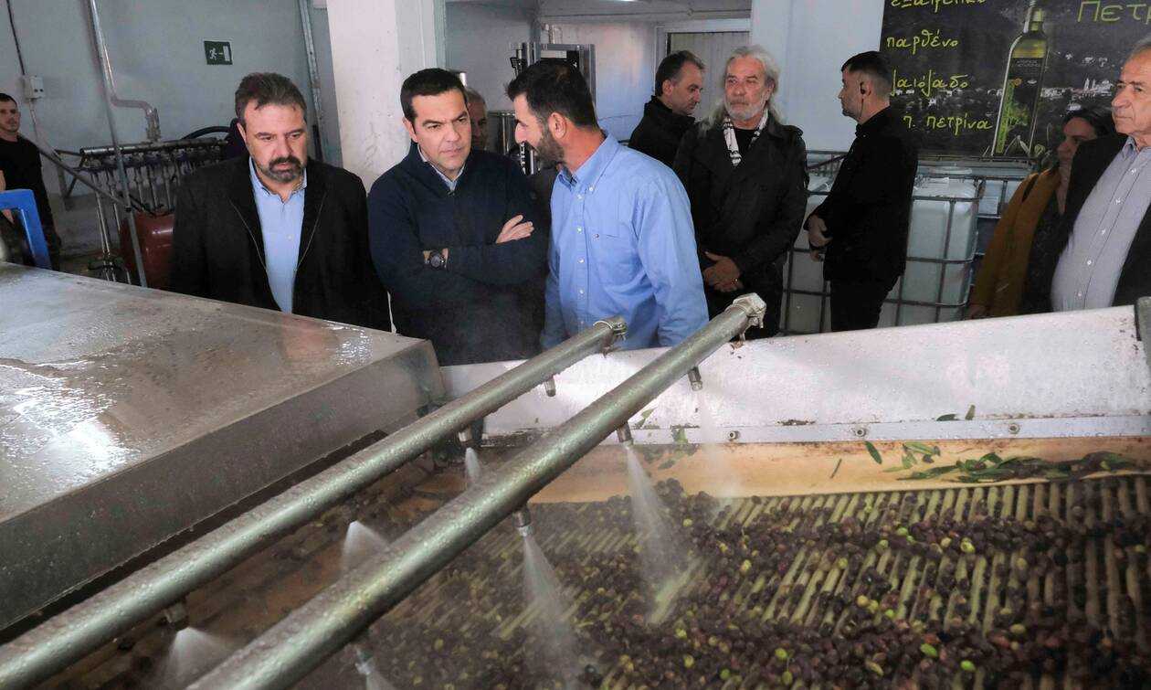 Αφού εξέφρασε τη χαρά του που επισκέφθηκε τον αρχαιότερο ελαιουργικό συνεταιρισμό, ο κ. Τσίπρας είπε ότι βρέθηκε εκεί «με αφορμή ένα αρνητικό γεγονός. Η εικόνα στην αγορά δεν είναι καλή, με την πτώση στην τιμή του ελαιολάδου να φτάνει στο 15% περίπου». Επισήμανε ότι η χώρα μας είναι συνδεδεμένη με την ελιά, ένα προϊόν εξαιρετικά ανταγωνιστικό, τον «χρυσό της Ελλάδας» και ότι «πρέπει να δούμε τι φταίει για το γεγονός, ότι άλλες μεσογειακές χώρες με χαμηλότερη ποιότητα έχουν απλωθεί στις αγορές». Έκανε λόγο για διαχρονικό πρόβλημα και για δύσκολη κατάσταση, για να σχολιάσει πως «δεν μπορεί η απάντηση να είναι ότι τα θέματα αυτά τα ρυθμίζει η αγορά όπως είπε ο κ. Βορίδης». Πρόσθεσε ότι πέρυσι, επί διακυβέρνησης ΣΥΡΙΖΑ, ο τότε υπουργός Αγροτικής Ανάπτυξης Σταύρος Αραχωβίτης, είχε ζητήσει έκτακτη ενίσχυση της ελαιοπαραγωγής. και έθεσε το ερώτημα αν υπήρξε συνέχεια σε αυτό το αίτημα, προαναγγέλλοντας ότι ο ΣΥΡΙΖΑ θα απευθύνει εκ νέου το ερώτημα στην ηγεσία του υπουργείου Αγροτικής Ανάπτυξης.