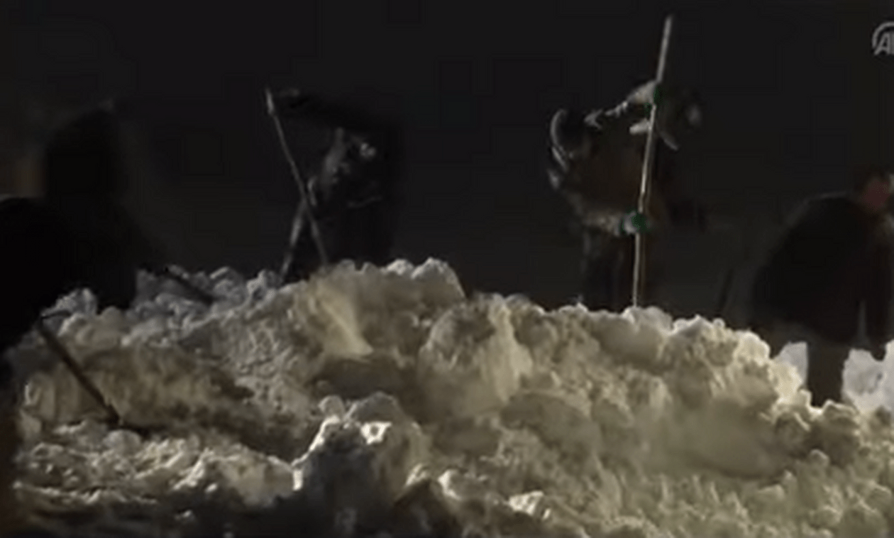 Οι εικόνες που μετέδωσαν τουρκικά μέσα ενημέρωσης έδειχναν δεκάδες διασώστες και χωρικούς να σκάβουν με φτυάρια μέσα στο χιόνι αναζητώντας επιζήσαντες.