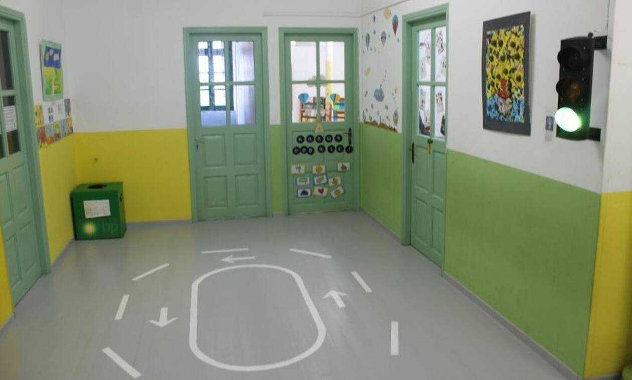 Μετέτρεψαν τον μακρύ διάδρομο του σχολείου σε δρόμο διπλής κατεύθυνσης με διαγράμμιση, έναν κυκλικό κυκλοφοριακό κόμβο με λειτουργία φωτεινού σηματοδότη, διαβάσεις πεζών και διάφορες σημάνσεις οδικής κυκλοφορίας. Διαχώρισαν την κεντρική σκάλα σε πλευρά ανάβασης από τη μια, και κατάβασης από την άλλη, υποχρεωτικά.