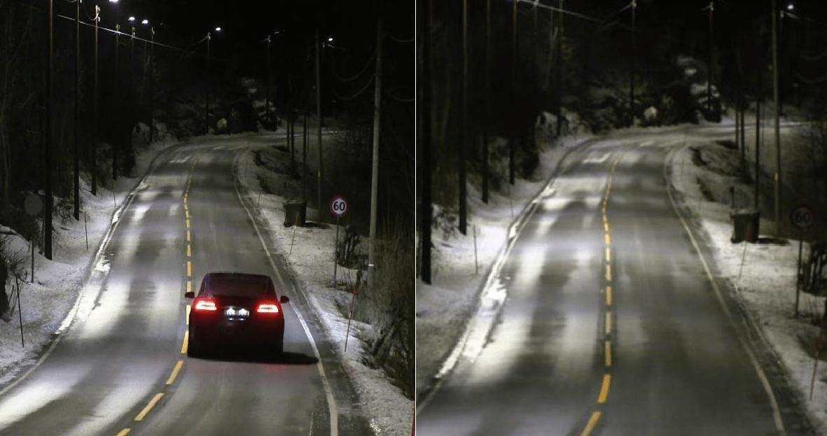 Λίγο έξω από το Οσλο, σε ένα κομμάτι δρόμου μήκους 5 χιλιομέτρων, τοποθετήθηκαν αισθητήρες κίνησης οι οποίοι καταγράφουν την κυκλοφορία στο δρόμο. Οταν το σύστημα διαγνώσει ότι δεν υπάρχουν αυτοκίνητα, ποδήλατα ή πεζοί, δίνει εντολή και η ένταση στους λαμπτήρες μειώνεται κατά 80%.