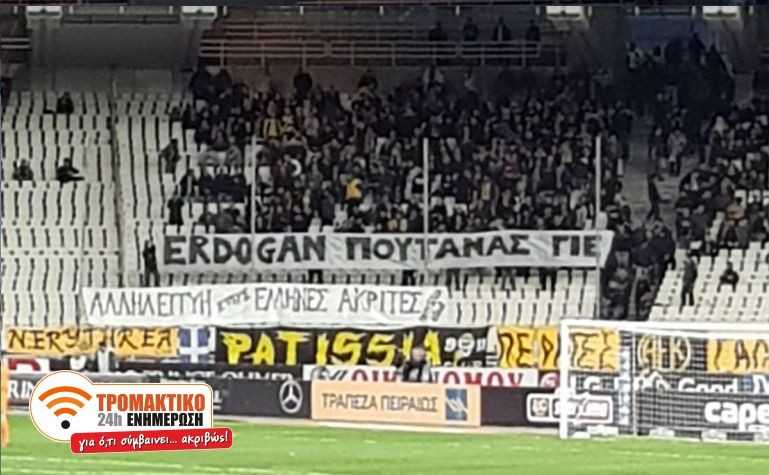 Φίλοι της Ένωσης, ανήρτησαν δυο ανατριχιαστικά πανό κατά του Ερντογάν, αλλά και ένα μήνυμα προς τους Ακρίτες, δηλώνοντας πως είναι δίπλα τους.