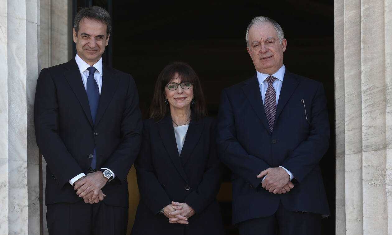 Νωρίτερα, η κα Σακελλαροπούλου έγινε δεκτή στο Μέγαρο της Βουλής από τον πρόεδρο του κοινοβουλίου Κων. Τασούλα και τον πρωθυπουργό Κυρ. Μητσοτάκη, ενώ άγημα των Ενόπλων Δυνάμεων απέδιδε τιμές. Ως είθισται, κόκκινοι τάπητες στρώθηκαν στους διαδρόμους του κτιρίου ωστόσο τις παραδοσιακές χειραψίες αντικατέστησαν οι “επινεύσεις”, όπως απαιτεί η περίσταση.